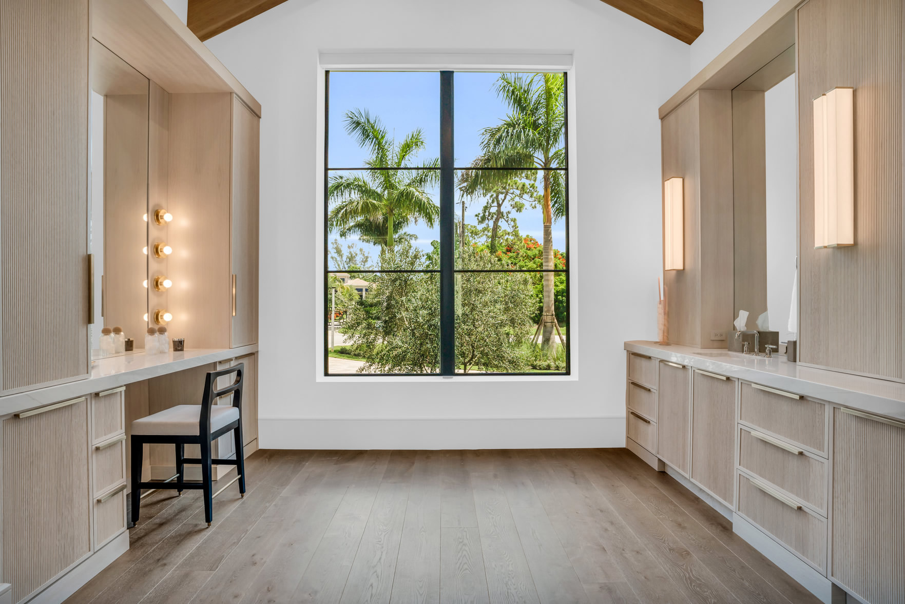 Step into a serene sanctuary where elegance meets functionality in this master suite. Expansive windows invite the outdoors in, while luxurious finishes and a sophisticated design palette exude warmth and elegance. Experience a harmonious blend of natural light and thoughtful design, transforming every moment into an extraordinary experience within your personal oasis.
