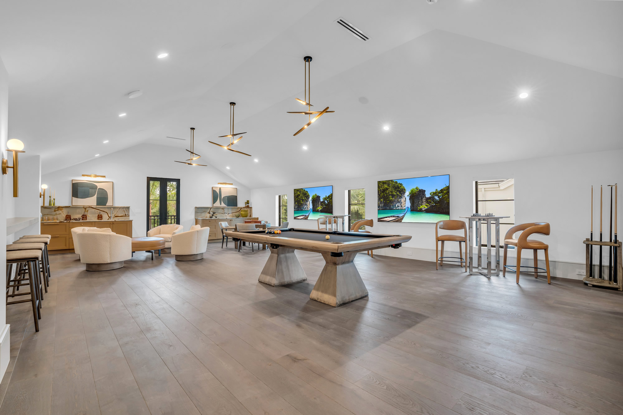 – Large game room with two bars, custom pool table, lounge seating, game table, and half bath