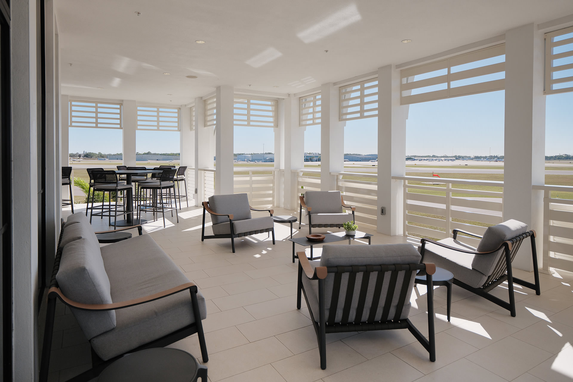 • A wrap-around second-floor open-air observation deck and event space, offering panoramic views of the Naples airfield—an ideal venue for intimate gatherings and aviation enthusiasts.