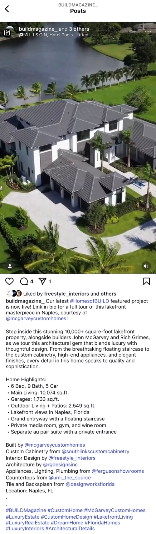 Reaching an audience of over 20M, Homes of Build sets a new standard for luxury home video storytelling and promotion, connecting audiences to the people and ideas shaping North America’s most extraordinary residences.