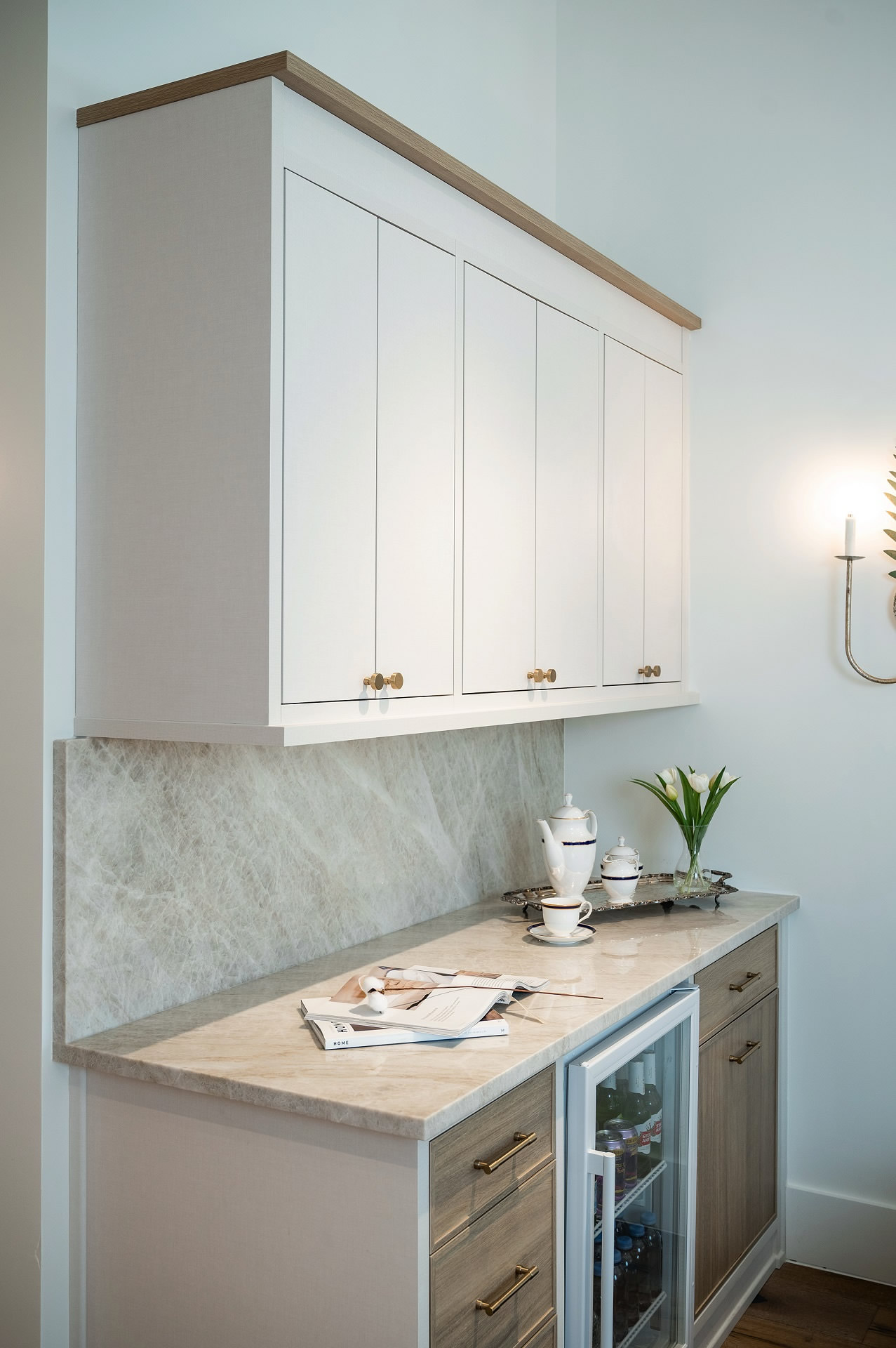 One unique aspect of the project was that the designer worked with the client entirely remotely from their home state, with no in-person meetings. Despite the distance, the client had a clear brand vision that the design team was able to transfer into the space through natural-looking materials with a hint of glam. The resulting color palette paired with luxe inset cabinetry, brought the vision to life.