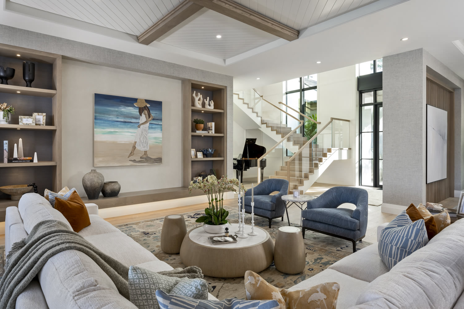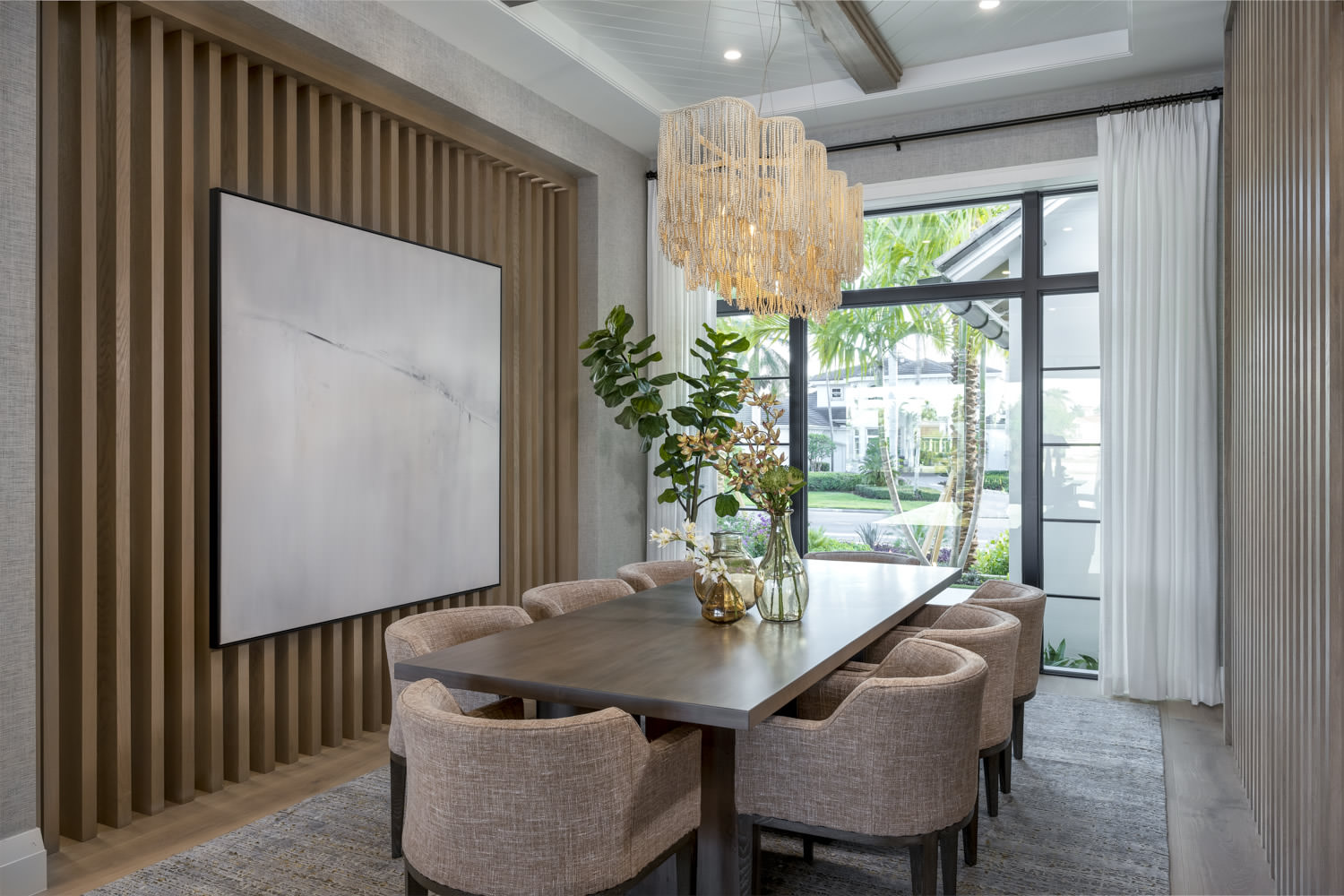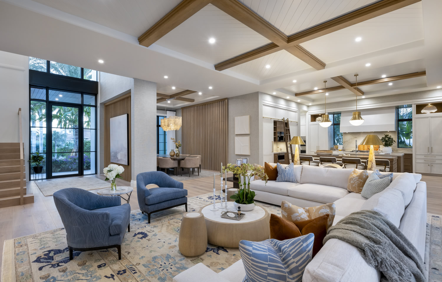 Nestled in the heart of Naples, this gorgeous model home not only boasts beauty, but a sense of tranquil livability. This home was the perfect curation between architect, builder, and designer coming together to create a design masterpiece. Though the home has an understated coastal feel, the goal was casual elegance. This goal was achieved by stepping out of the typical blue & white scheme and dive into a warm, natural, and dimensional feel. This feeling can be found through the entirety of the home through the finishes, the soft goods, and accents like lighting and art.