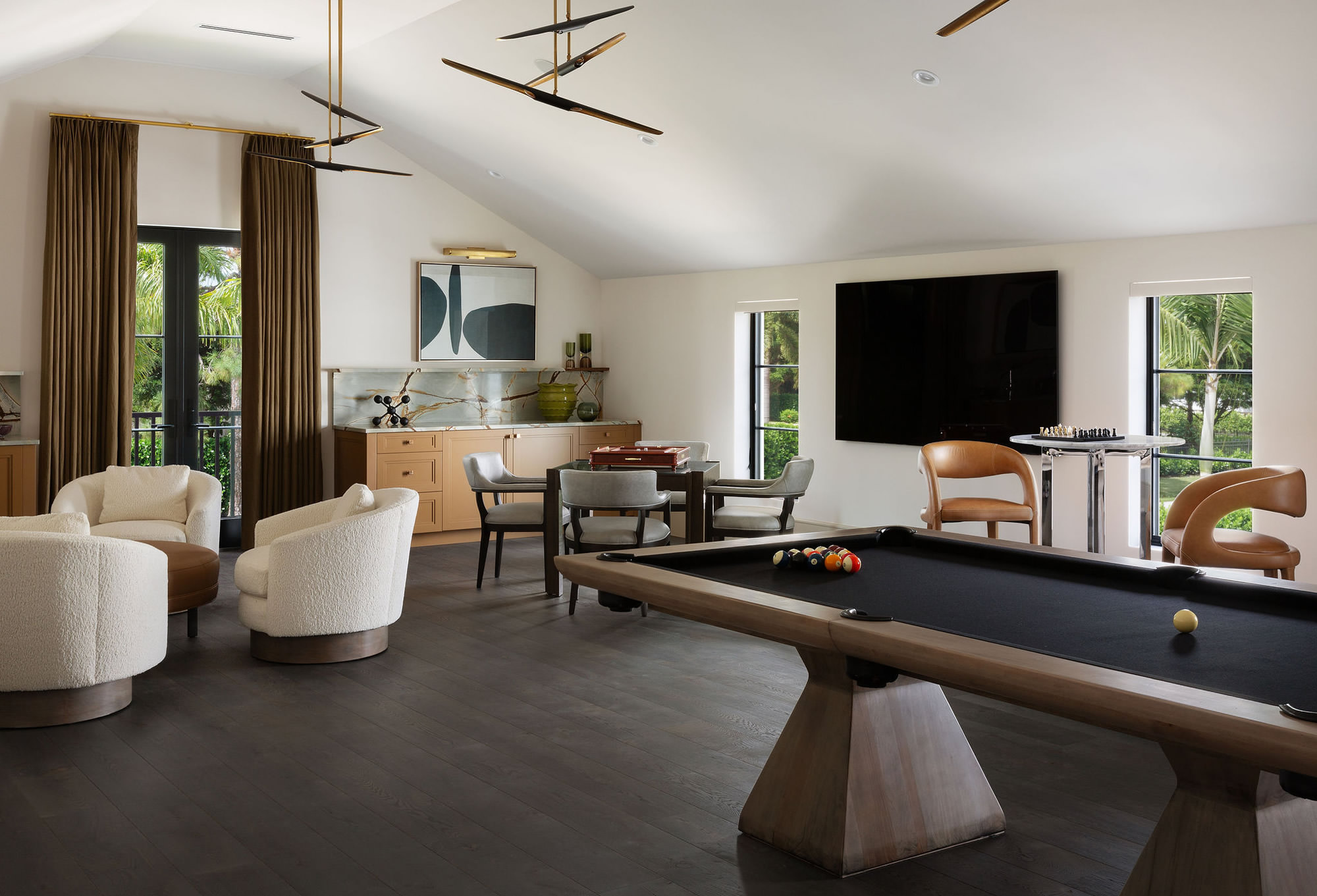 recreation and relaxation, while the wine display showcases a refined approach to entertaining.