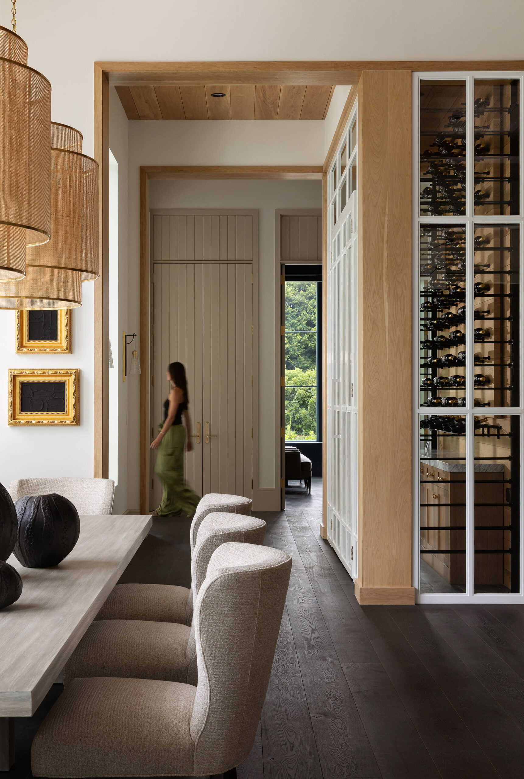 wine room designed for both storage and display, and a bar with marble-clad shelvesthat elevate