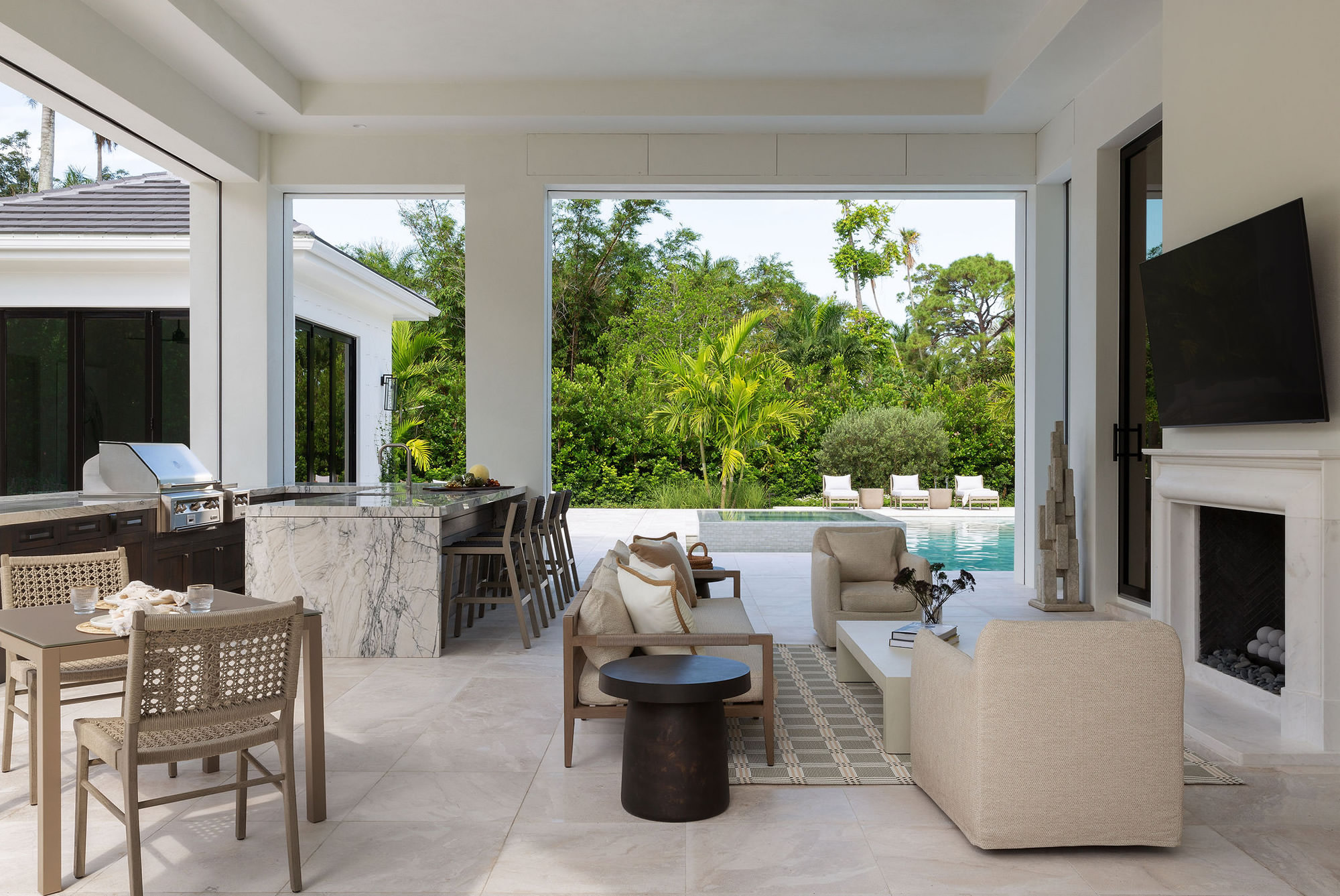 doors bring in an abundance of natural light and seamlessly connect the indoors with the