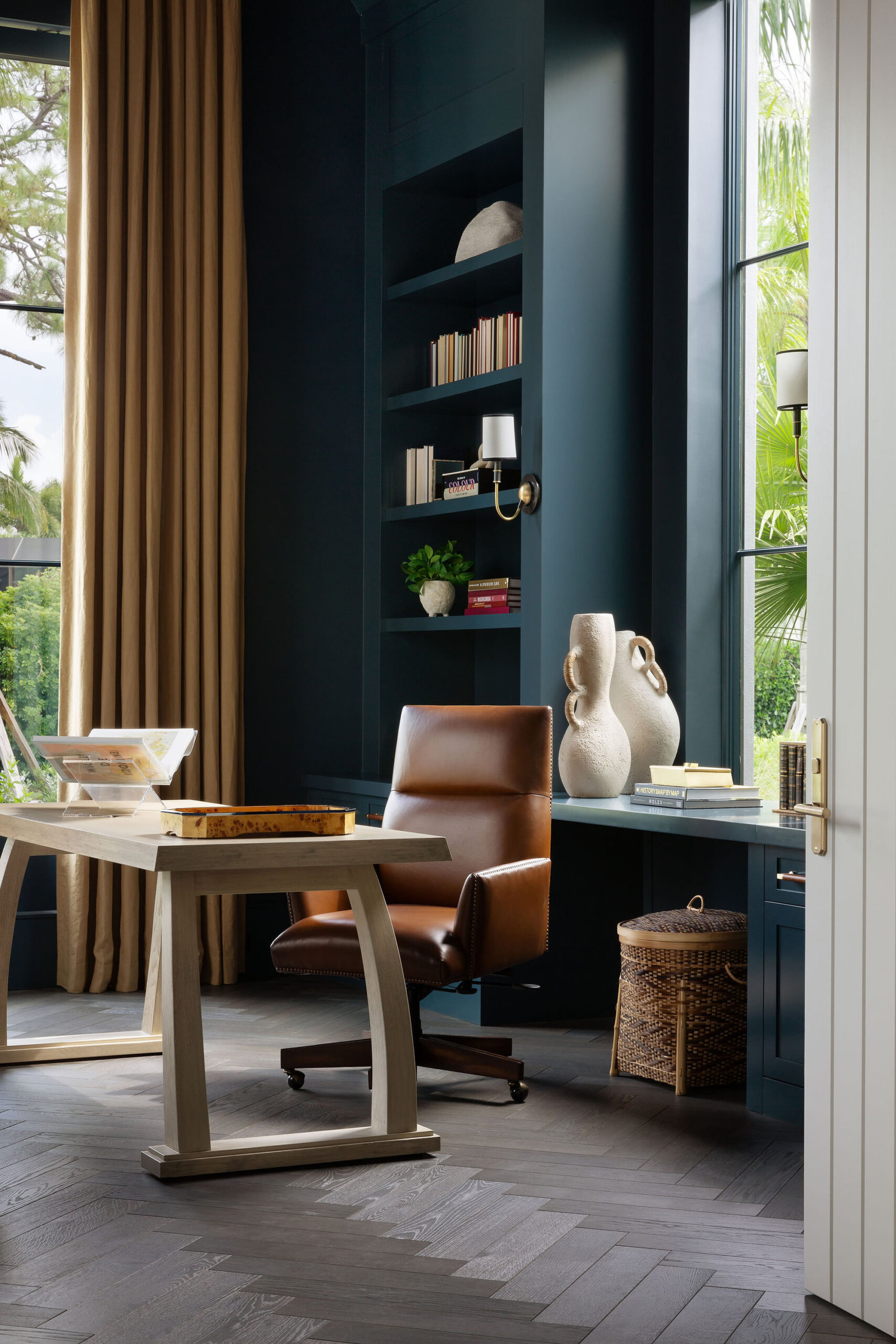 Hickory Chair, and Oly Furniture enhance the aesthetic. The study, featuring a classic
