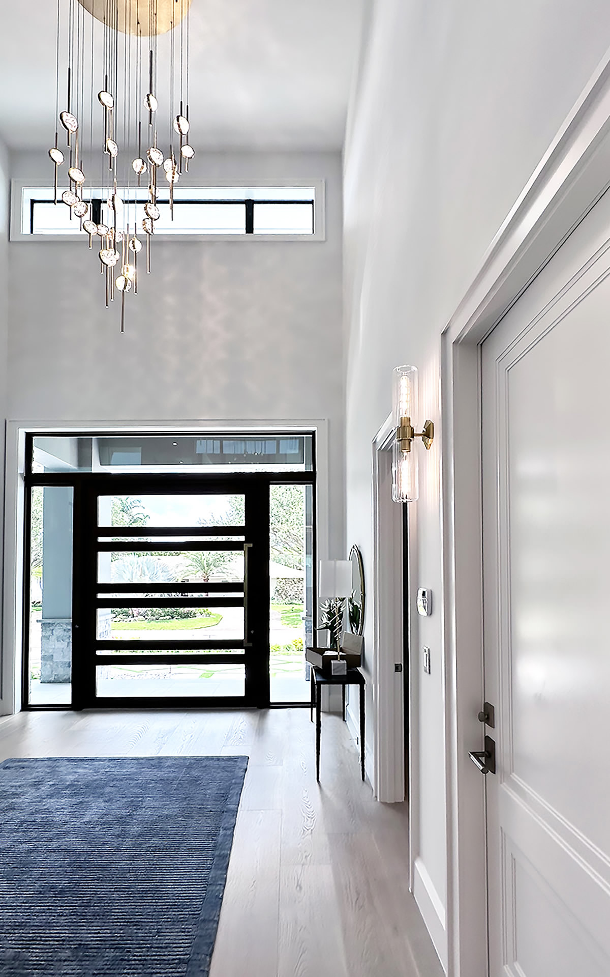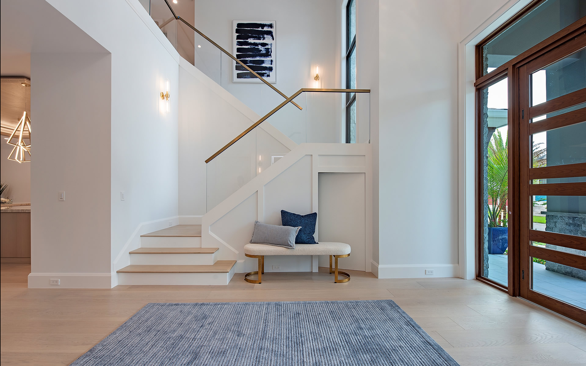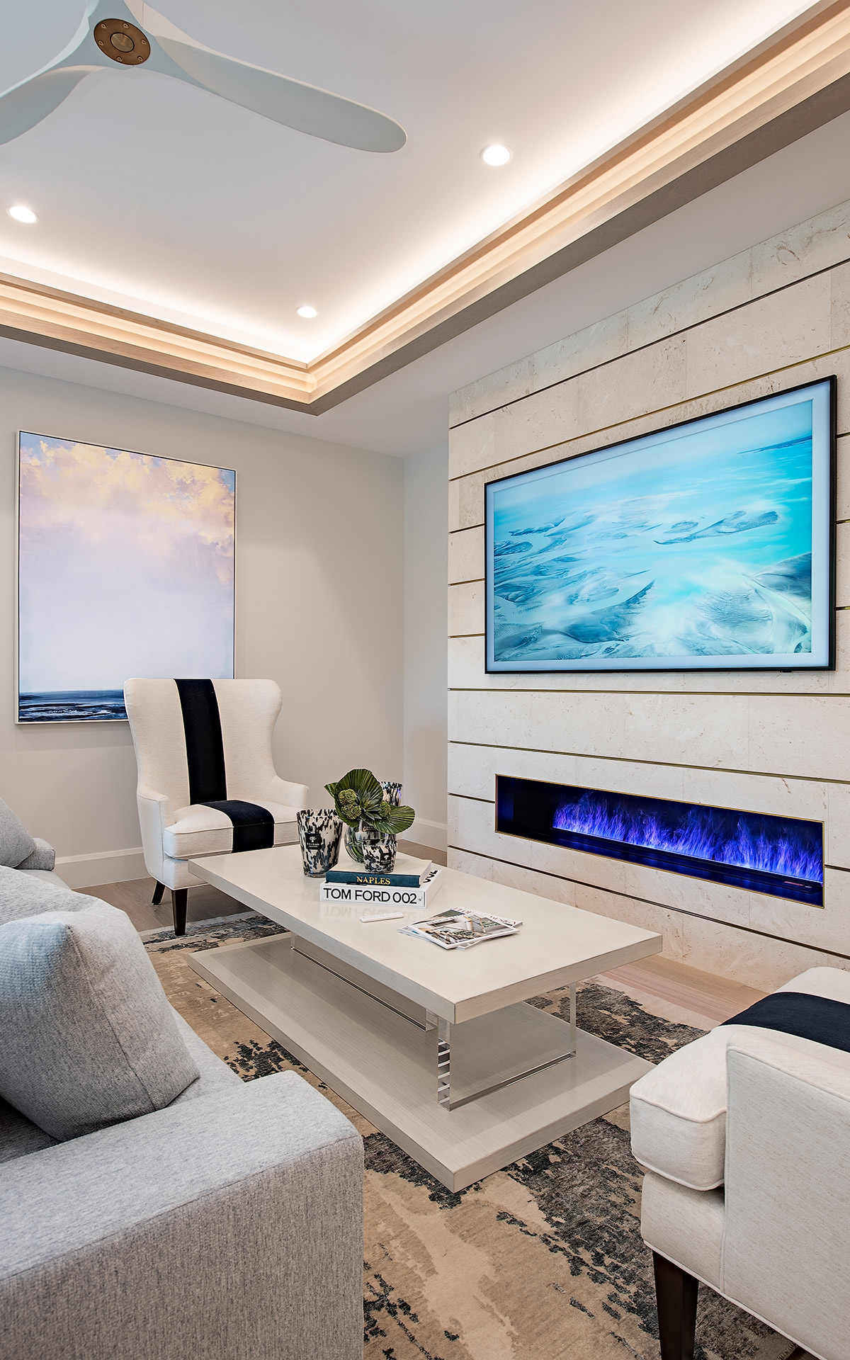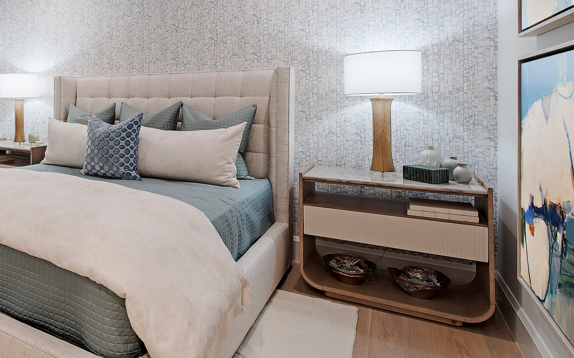 This model residence seamlessly integrates form, function, and forward-thinking living. A vaulted ceiling in the grand entryway anchors the design, while an elevator, dual laundry rooms, and a second-floor kitchenette add functionality to the five-bedroom layout, which also features an additional study that can be used as a sixth bedroom and 5.5 bathrooms. The exterior further enhances the experience, featuring 1,901 square feet of outdoor living space, including a pool, terrace, and patio with outdoor furnishings complementing this Park Shore Model Home.