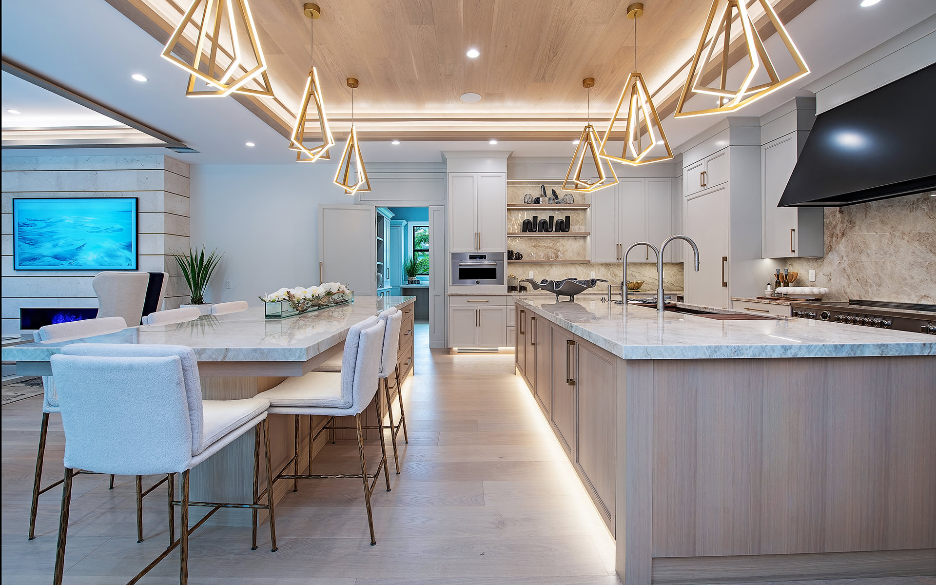 Designers brought their signature elevated coastal aesthetic to life. Their vision: to blend organic materials, thoughtful textures, and curated furnishings into a space that evokes calm, comfort, and quiet elegance. The showstopping open-concept kitchen and dining space flows seamlessly into the living areas, each space defined by exquisite ceiling details and custom cabinetry. Sculptural lighting throughout and the serene primary suite features custom millwork and rich layers of pattern and texture; every corner of this home is a study in balance and refinement.