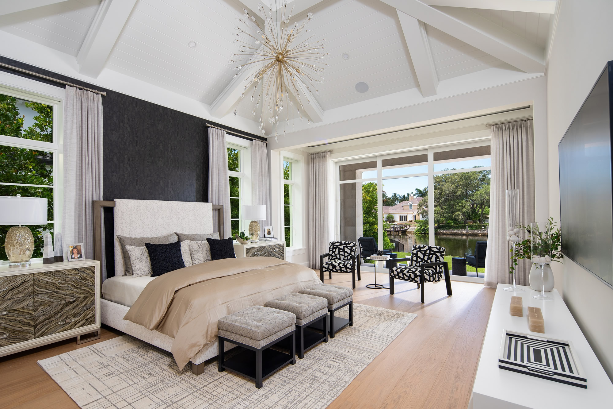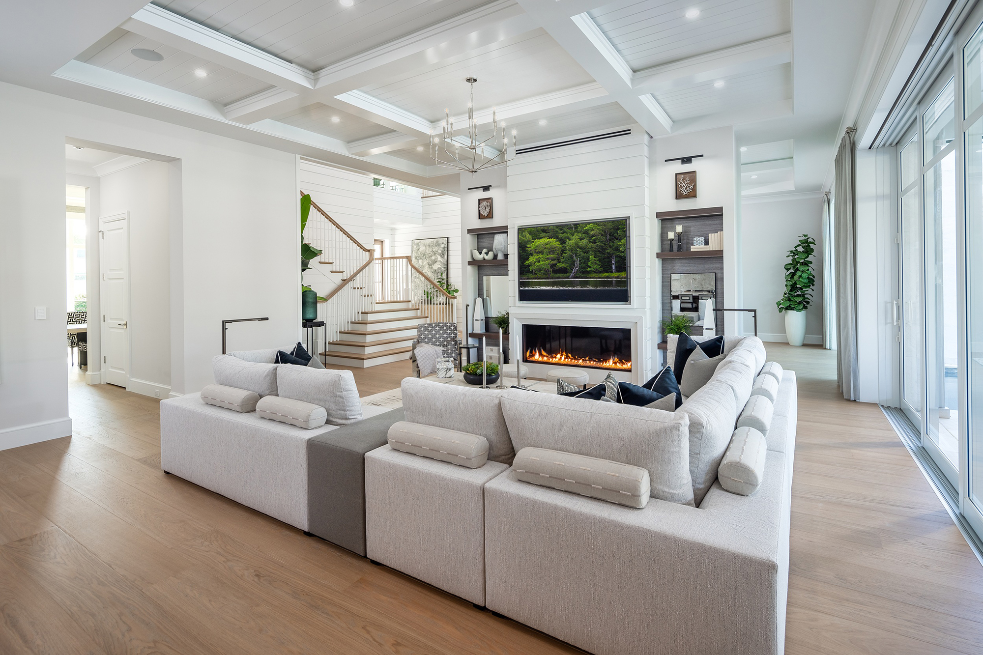 Perfect for both intimate gatherings and large-scale entertaining, the home features a stunning chef’s kitchen by Ruffino Custom Cabinetry that opens to a spacious family room, a formal living and dining room, and a walk-in custom wine room that stores over 1,000 bottles. The club room with an attached office and hidden door that leads to the master suite offers additional space to relax, entertain, or to get some extra work done, while the 4-car garage provides ample storage for vehicles and more. Step outside into your private resort-style oasis, complete with a sprawling outdoor living area, outdoor kitchen and bar, fire pit, multiple sitting and lounging areas, and a breathtaking infinity-edge pool overlooking the water. This is luxury coastal living redefined in one of Florida’s most sought-after enclaves. It’s no wonder that out of seven new construction homes currently being offered on this street alone, ours was the one to sell first and set the high-price benchmark.