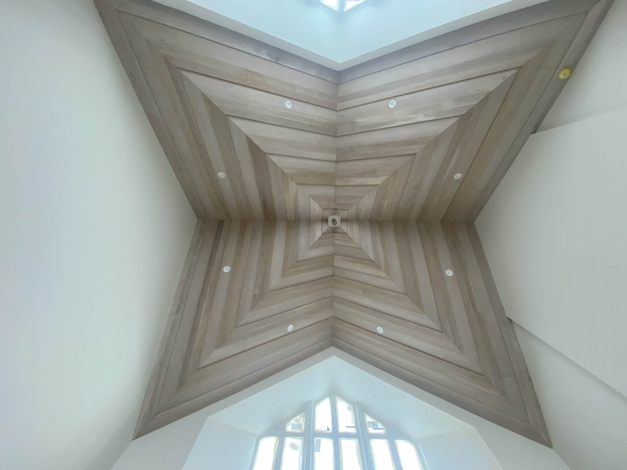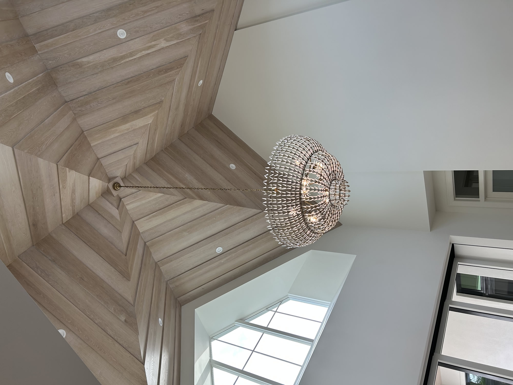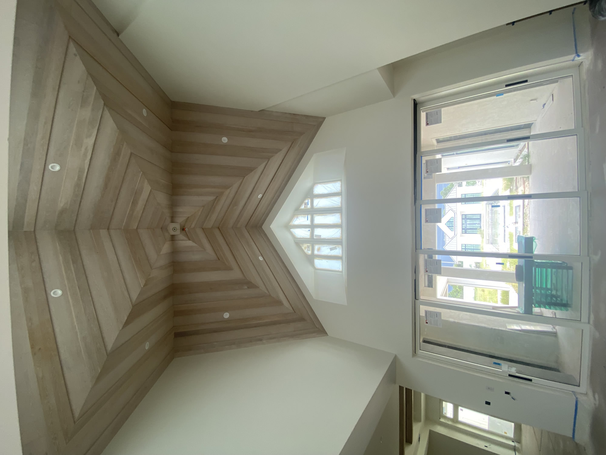 The great room of this record-breaking estate in Pine Ridge Estates sets a new standard for architectural artistry. The moment you step through the front door, your eye is immediately drawn upward to a showstopping ceiling—an inspired collaboration between the builder and designer. Crafted from warm white oak, the ceiling’s design forms a striking visual illusion, appearing as four pyramid-like shapes seamlessly joined together. This sculptural feature anchors the space with a sense of scale and sophistication, redefining what it means to make a grand entrance. Bold, unexpected, and meticulously executed, it’s a statement piece that sets the tone for the rest of this exceptional home.