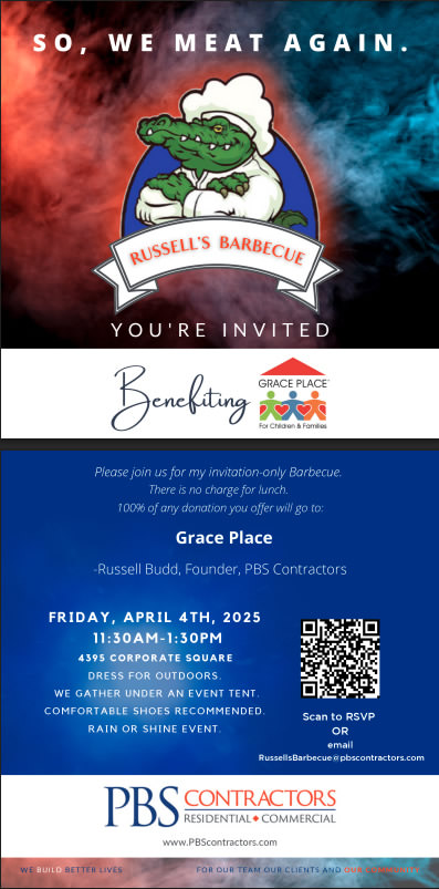 Russell’s Barbecue is a biannual, invitation-only event that blends culinary tradition with community impact—an expression of our purpose: We Build Better Lives for our Team, our Clients, and our Community. What began in 2011 as a way to support a staff member in need has evolved into a signature philanthropic event, raising tens of thousands of dollars for local nonprofits while showcasing creativity, collaboration, and purpose-driven promotion. This entry reflects the October 2024 and April 2025 events.