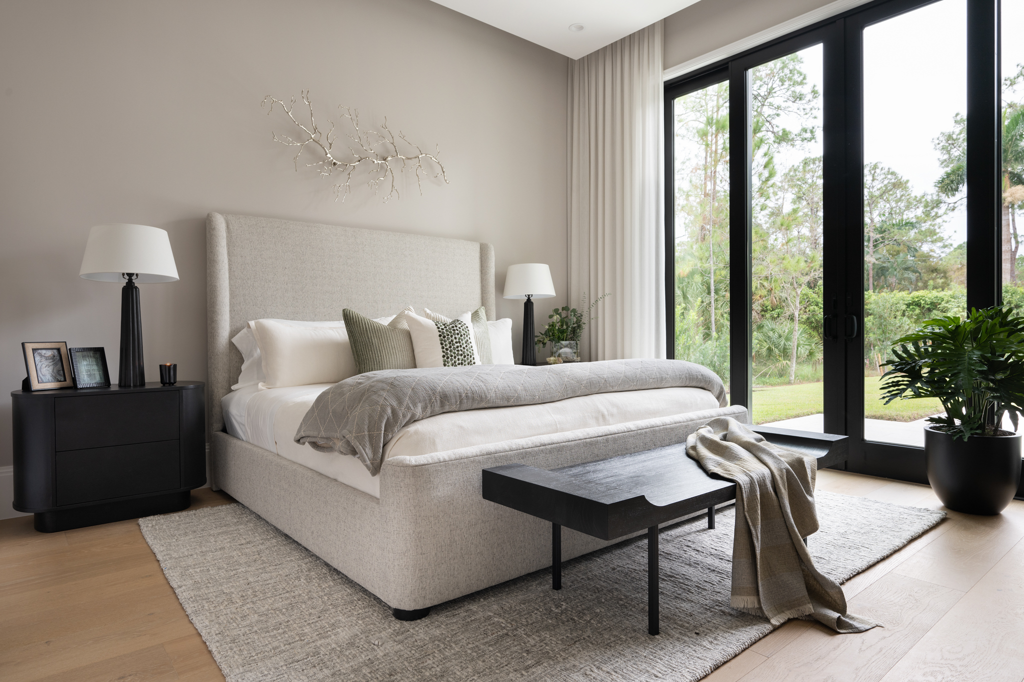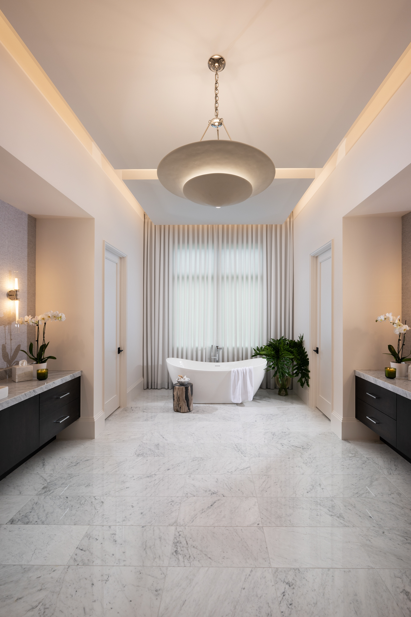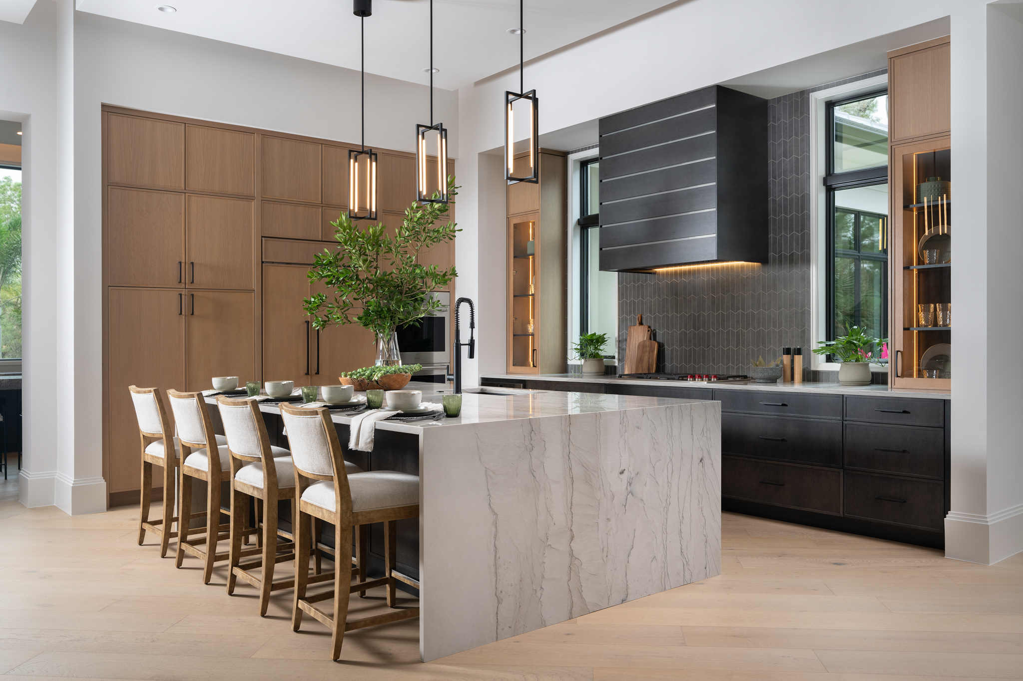 Boasting over 4,800 square feet of refined luxury, the Liberty model is a striking showcase of modern sophistication and timeless elegance. This thoughtfully designed open-concept floor plan seamlessly blends indoor and outdoor living, creating a sanctuary ideal for relaxation, entertaining, and embracing Florida’s luxurious lifestyle. The Liberty model features four spacious bedrooms, a study, four full and two half baths, and a dual two-car garage. Warm European White Oak flooring flows throughout the home, complemented by clean architectural lines, natural wood accents, and reverse lit soffit ceiling details that add ambiance and dimension. At the heart of the home, the gourmet kitchen impresses with stacked two-tone cabinetry, lit glass display uppers, a waterfall island, a striking backsplash, and premium Sub-Zero/Wolf appliances. A wall of windows floods the space with natural light, while an adjacent temperature-controlled wine room enhances the dining experience. A generously appointed bar with under-counter refrigerator and ice maker provides additional entertaining space. The primary suite offers a serene retreat, featuring a cozy sitting area and direct access to the covered lanai. The spa-inspired master bathroom is finished in marble and features dual vanities, two private water closets, a soaking tub, and an oversized shower equipped with four showerheads and Kohler plumbing fixtures. The custom outdoor living space is a true oasis, complete with a screen enclosure, tongue-and-groove stained ceiling, stone see-thru fireplace, pool bath, and a full outdoor kitchen. The oversized pool with bubbler and spa, surrounded by lush landscaping and a spacious yard, invites leisure and social gatherings alike.
