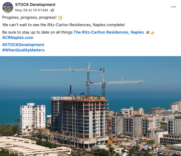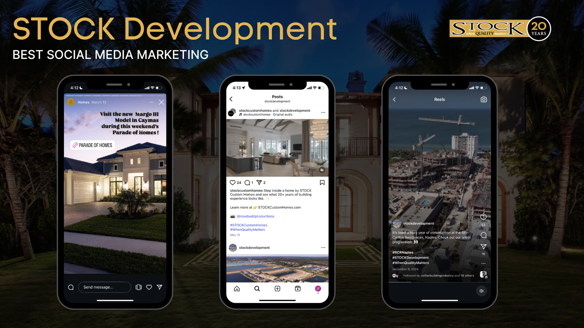With custom home updates, Ritz-Carlton Residences updates, local news and lifestyle posts, STOCK Development has engaged more than 80,000 people via social media, saw more than 200 organic link clicks and over 500 new followers across its social platforms since January 2025.