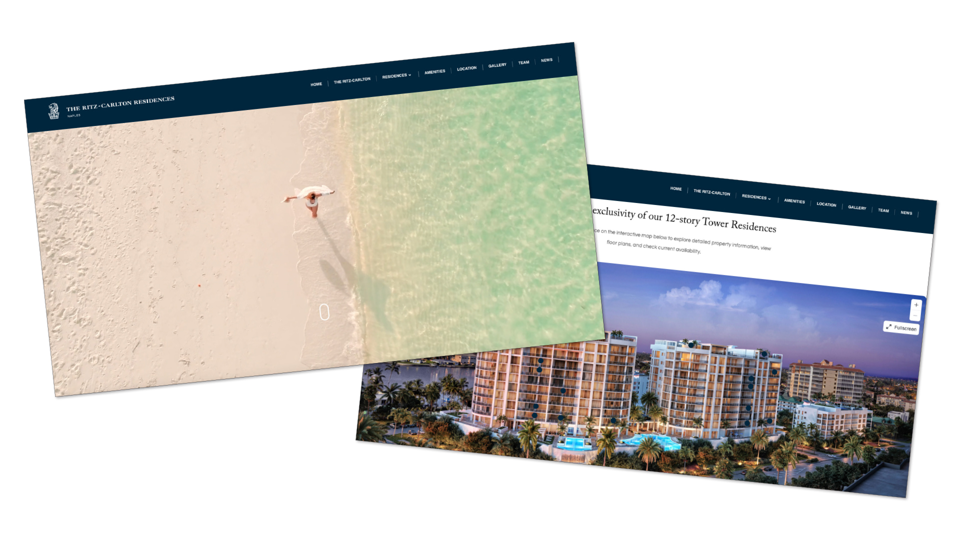 The Ritz-Carlton Residences, Naples website was meticulously designed to reflect the unmatched luxury, elegance, and exclusivity of the brand’s first standalone residential offering in Naples. This digital experience serves as the primary portal for affluent buyers and brokers seeking a refined coastal lifestyle defined by elevated service, world-class design, and exceptional location.