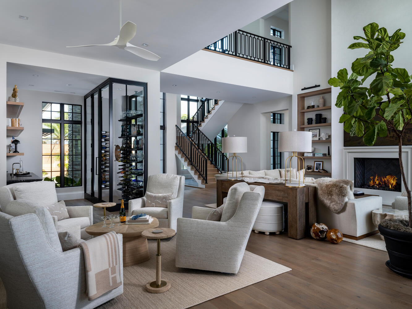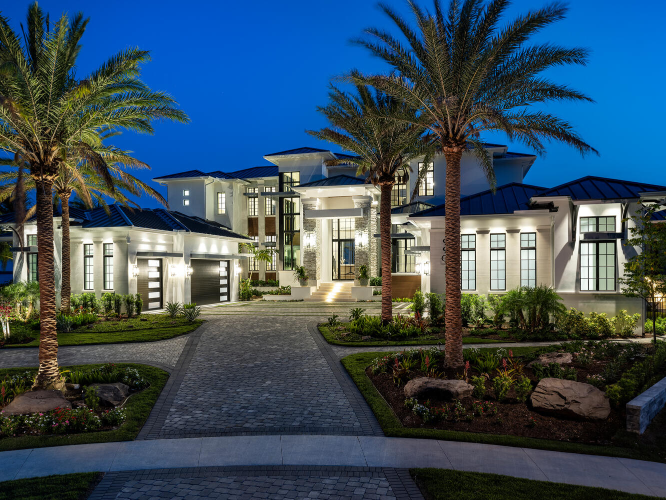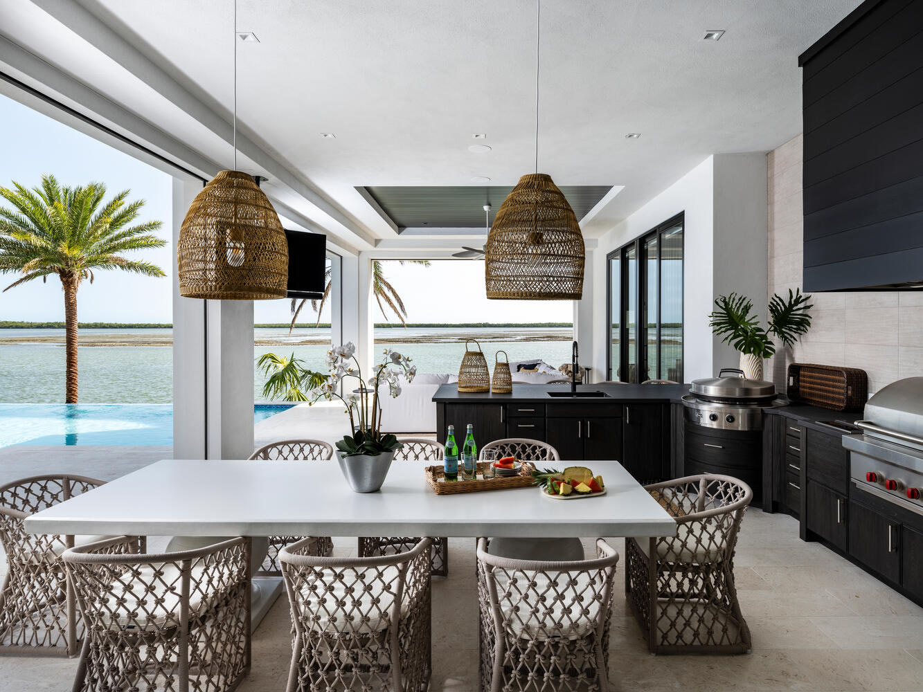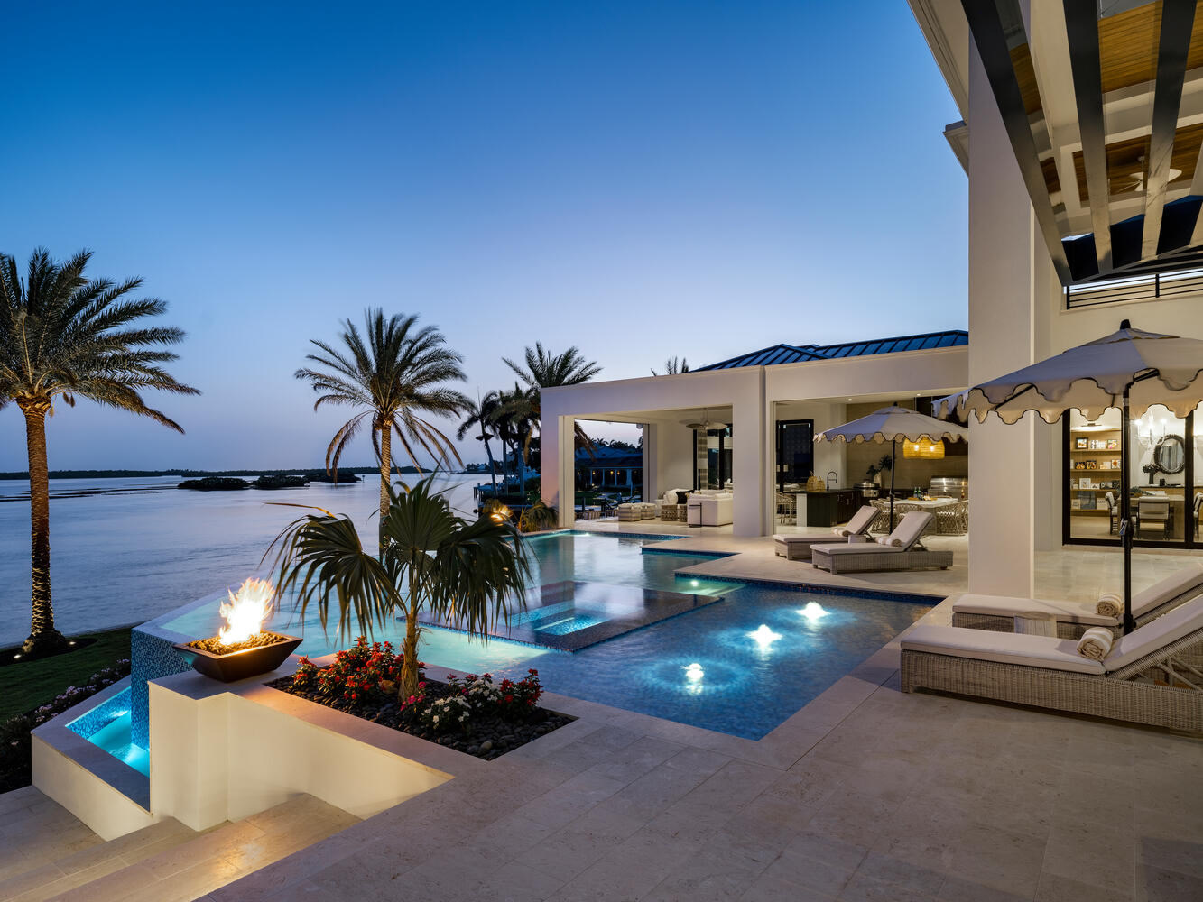 This project was a labor of love for a close-knit family that has an affinity to the salt life. The almost 14,000 sf, 2 story home boasts plenty of guest bedrooms for their large family and an inviting outdoor living area that includes an infinity pool, outdoor kitchen and a wraparound dock to house their boats. The clients hailed from Minnesota and wanted a blend of Florida coastal meets hunting lodge for their architectural style. The house has two, 3 car garages that will hold plenty of vehicles including golf carts. The entry has a beautiful staircase surrounded by windows that gives the appearance of a glass tower. The state-of-the-art kitchen has two spacious islands, as well as Subzero, Wolf and Perlick appliances. The principal suite has its own private, outdoor oasis. Additional spaces include a media room, study, upstairs laundry room and elevator. There is also a boat house that is connected to the main house via a breezeway that has plenty of space for fishing rods, a spacious island for preparing fish and an extra bathroom.