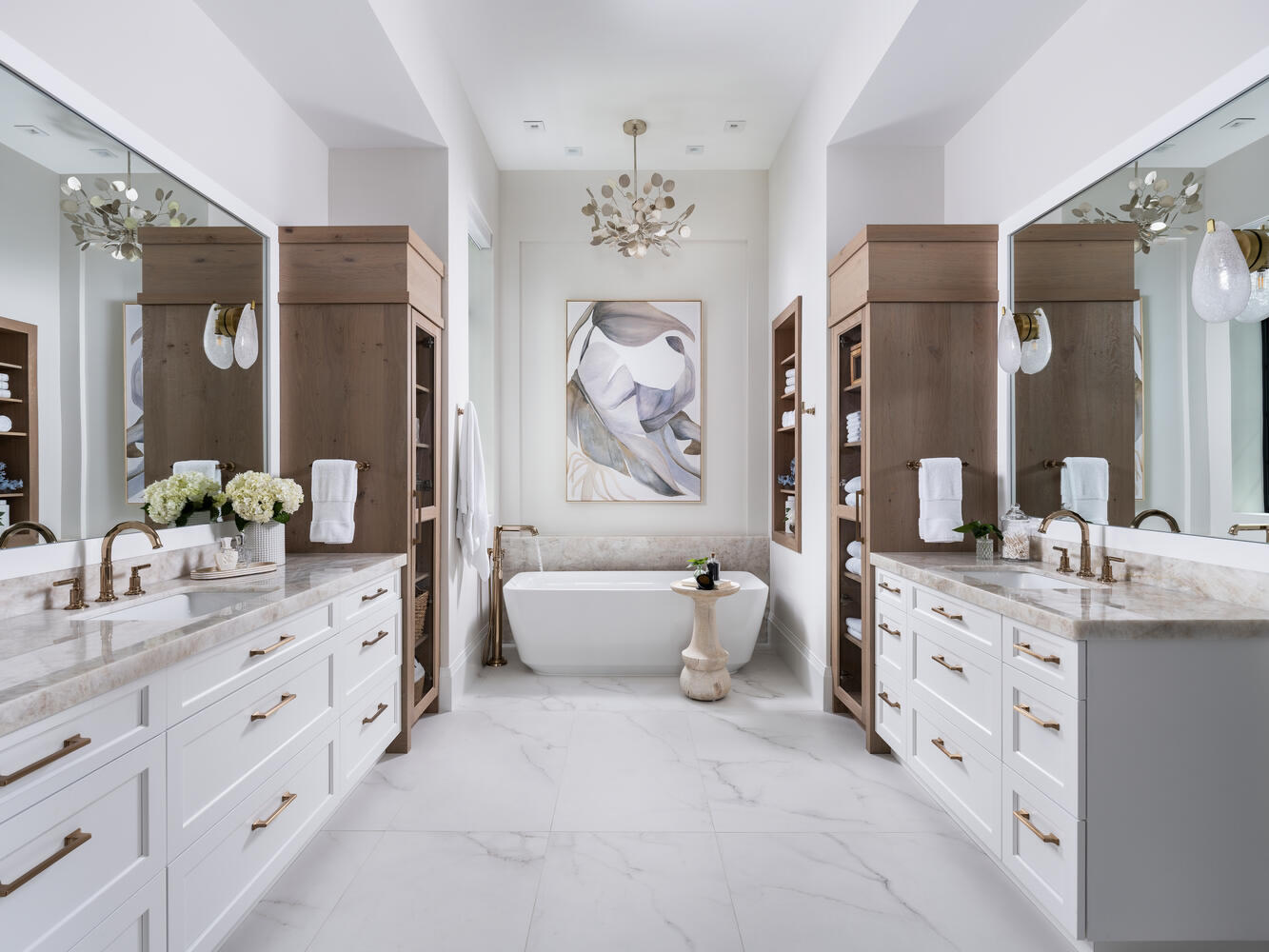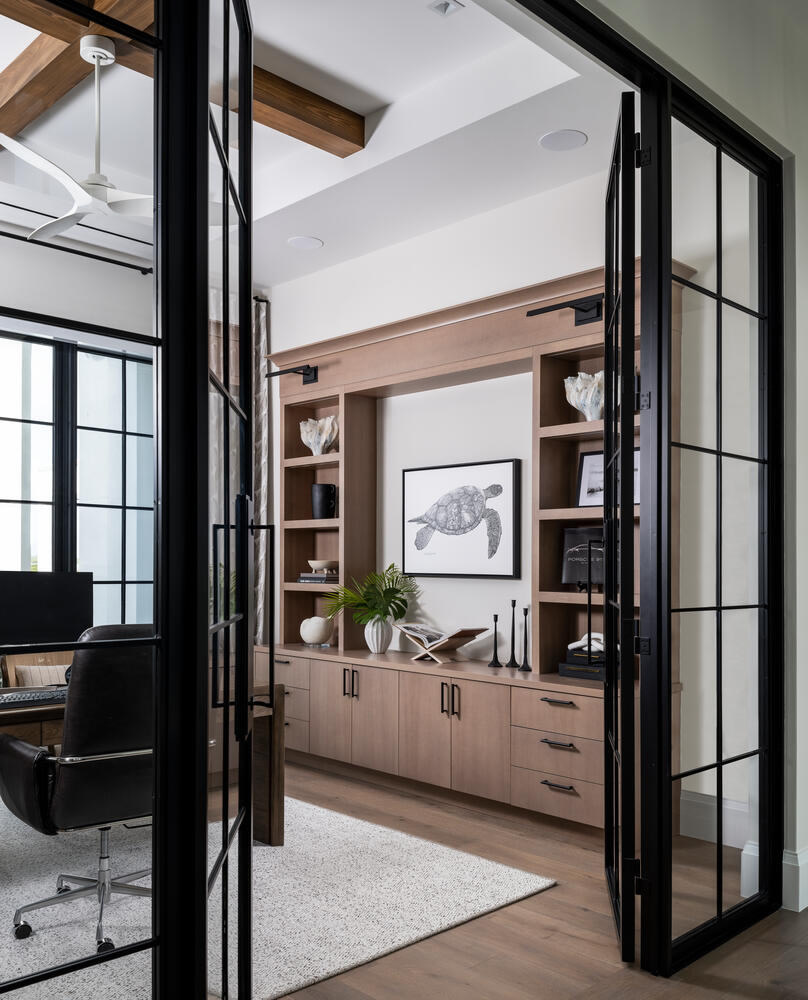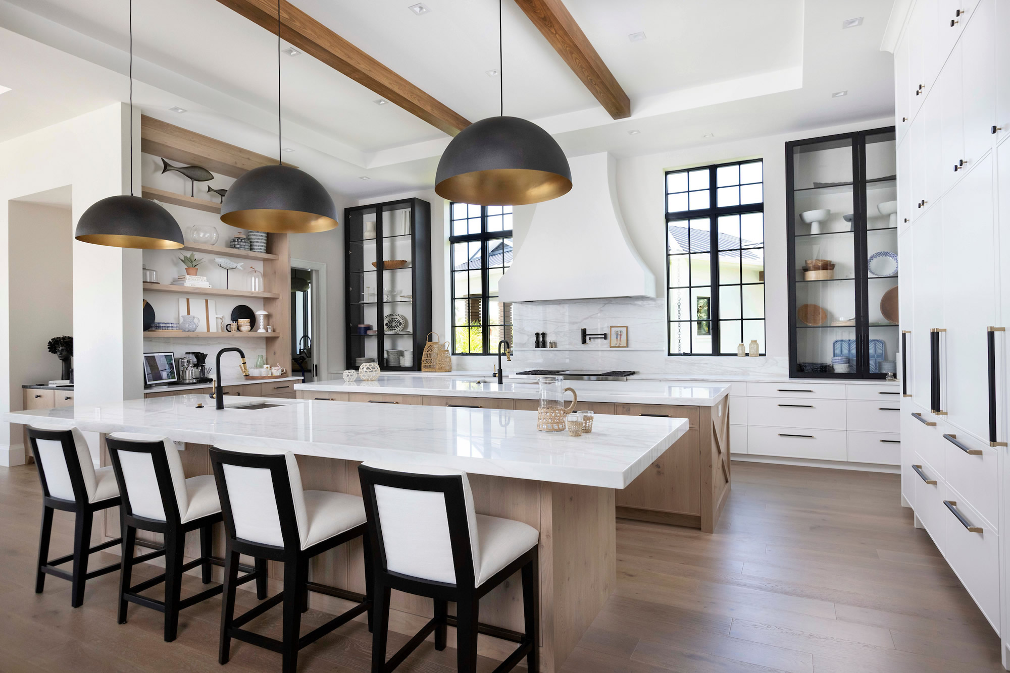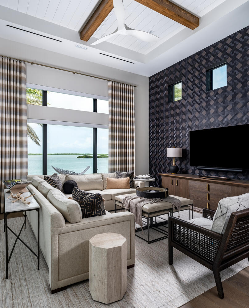 This project was a labor of love for a close-knit family that has an affinity to the salt life. The almost 14,000 sf, 2 story home boasts plenty of guest bedrooms for their large family and an inviting outdoor living area that includes an infinity pool, outdoor kitchen and a wraparound dock to house their boats. The clients hailed from Minnesota and wanted a blend of Florida coastal meets hunting lodge for their architectural style. The house has two, 3 car garages that will hold plenty of vehicles including golf carts. The entry has a beautiful staircase surrounded by windows that gives the appearance of a glass tower. The state-of-the-art kitchen has two spacious islands, as well as Subzero, Wolf and Perlick appliances. The principal suite has its own private, outdoor oasis. Additional spaces include a media room, study, upstairs laundry room and elevator. There is also a boat house that is connected to the main house via a breezeway that has plenty of space for fishing rods, a spacious island for preparing fish and an extra bathroom.