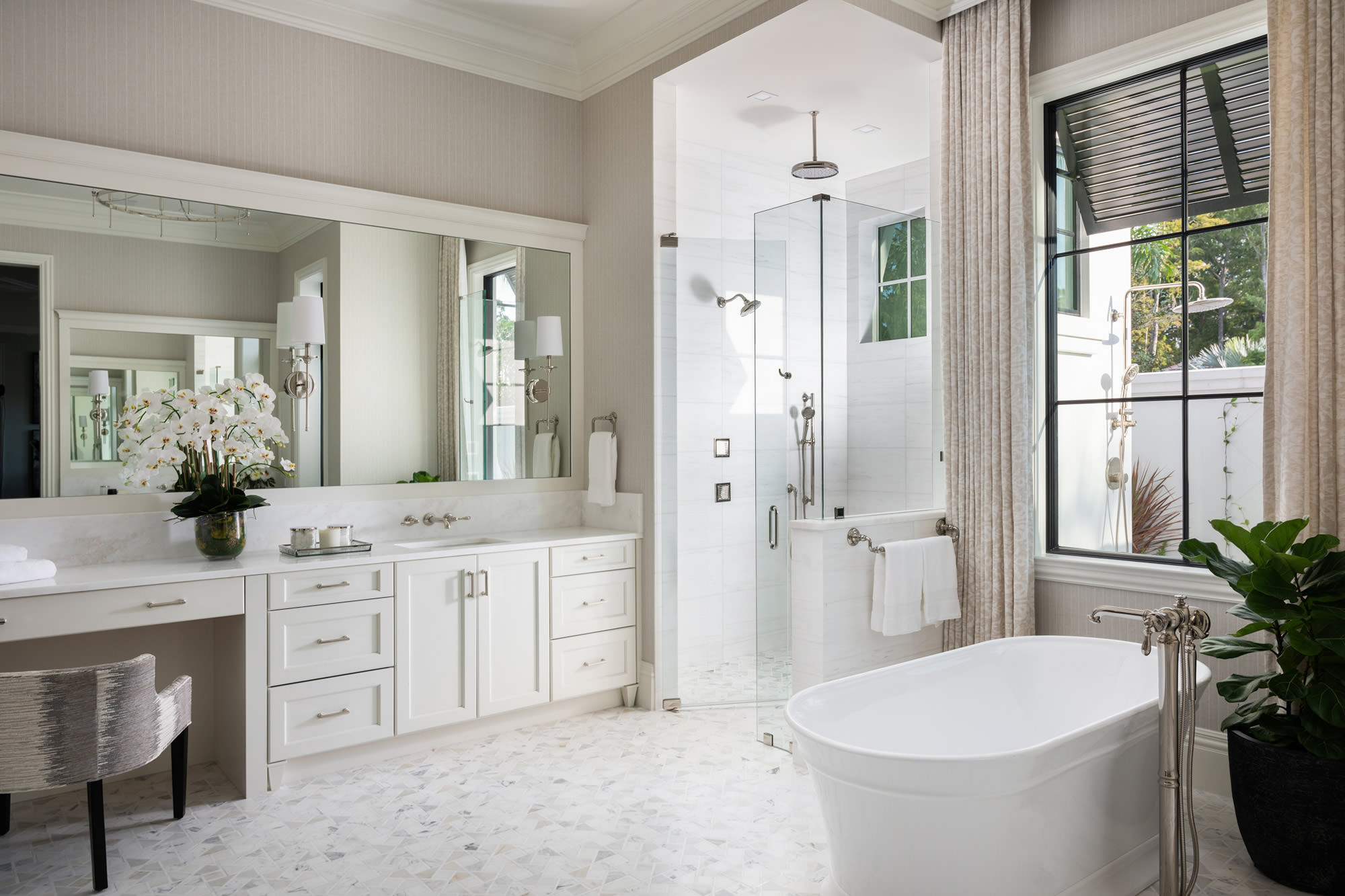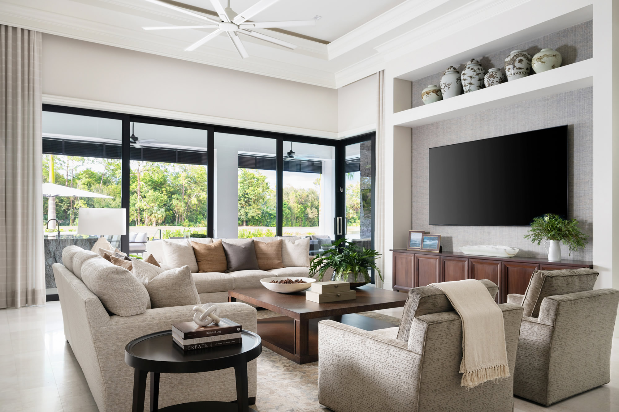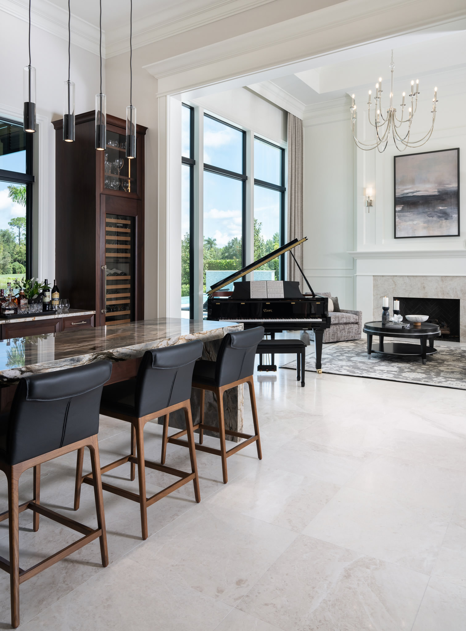 This expansive 6,000+ sq.ft. Quail West residence, completed in 2024, embodies the elegance & sophistication of New Traditional style, seamlessly blending classic elements with modern comfort and luxury. All perfect for a large busy family. The home features marble floors, timeless 2-piece crown ceiling details, elegant entablatures & panel moldings. A warm neutral color palette is punctuated with walnut & black accents. The Grand Reception features a stately fireplace, baby grand piano and conversation grouping. The formal Dining Room, with its large-scale palm wallpaper, custom breakfront & dining table, is perfect for elegant dinner parties. The Kitchen features walnut cabinetry, brushed Taj Mahal countertops, Wolf Sub Zero appliances and custom “table” that accommodates 10 for more casual gatherings. The stylish Bar is designed with a SubZero wine cooler, fridge drawers & plenty of storage for liquor bottles & barware. The double waterfall bar is Blue Tempest quartzite. The Master Suite is a sanctuary containing a morning bar, marble bathroom with heated floor, soaking tub, shower with body sprays & rain head, double vanities, gym and a private zen garden with a water wall, sitting area & outdoor shower. The Study is designed with custom cabinetry tailored to suit the specific needs of the client. The impressive outdoor spaces include a resort style pool & spa, an outdoor kitchen, dining & living areas and fire pit. Perfect for outdoor entertainment. This spectacular home also offers 3 Guest Suites, Laundry, Pantry & Butlers Pantry.