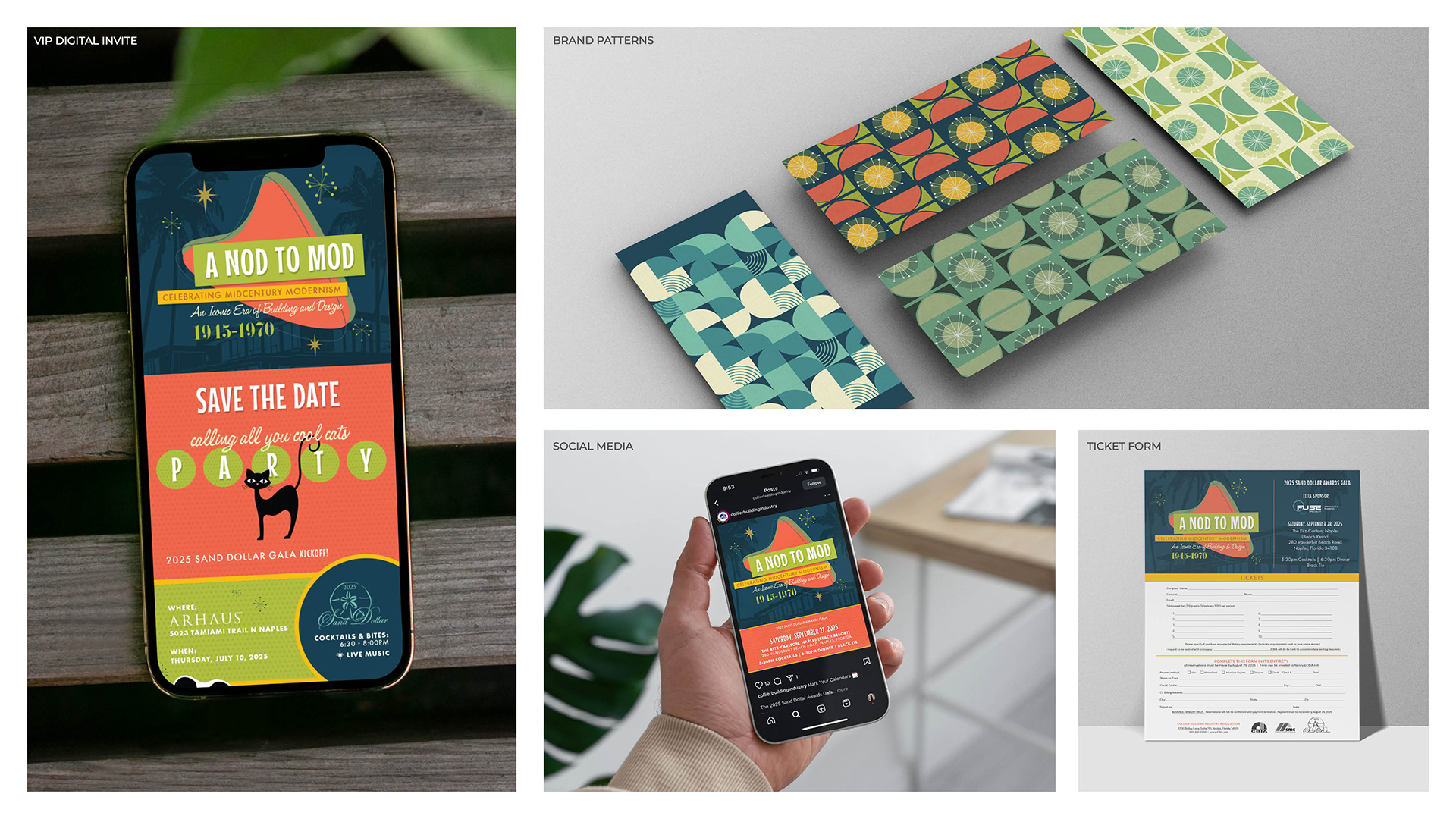 The theme resonated with CBIA’s design-forward audience and gave sponsors a strong visual system to align with. The final result is a cohesive brand experience that honors’ the legacy of design while setting a stylish tone for one of Southwest Florida’s most anticipated industry events.